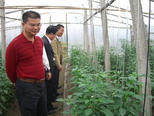 (廉江市政府办公室副主任廖忠武陪同湛江市科协主席黄东云、副主席郭向明考察辣椒基地)