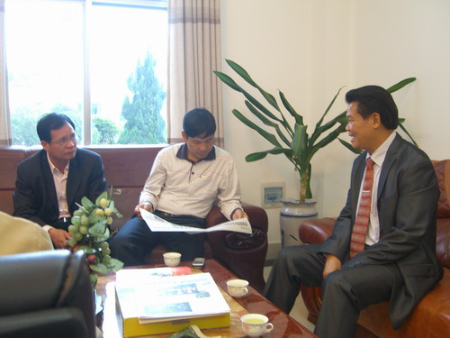 (湛江市科协黄东云主席到该基地调研,听取基地负责人蔡进对示范基地“十二五规划”科普发展的汇报)