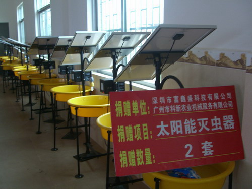 廉江市吉水镇西莲塘农技所使用的太阳能灭虫器