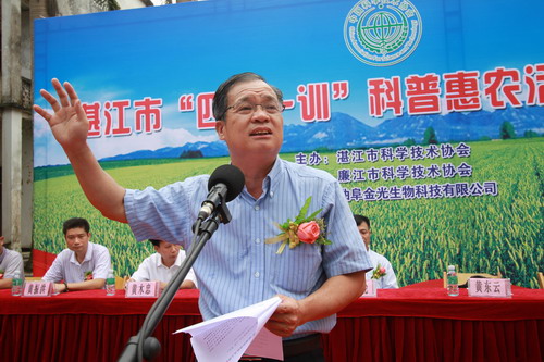 (湛江市科协党组书记、主席黄东云宣布“四送一训”科普惠农活动正式启动)