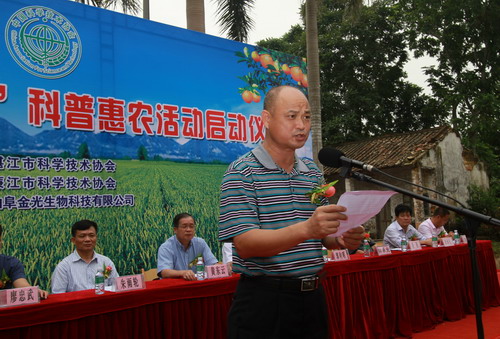 10月10日上午10时,由湛江市科学技术协会主办、廉江市科学技术协会协办、曲阜金光生物科技有限公司承办的湛江市以送农资、送科技、送新项目、送新成果、开展农业使用技术培训为主的“四送一训”科普惠农活动启动仪式在廉江良垌镇政府大院隆重举行,湛江市科协主席黄东云、廉江市副市长崔军、曲阜金光生物科技有限公司总经理金明基等领导和湛江市各县(市、区)科协领导及科技示范户、科普带头人参加了启动仪式。
