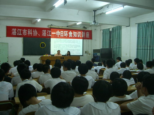 据悉5月21日清晨 在湛江东海岛可以观察到千年一遇的日环食天文现象。为提高我市全民科学素质,培养青少年学科学、爱科学、用科学的精神,5月10日,湛江市科协与湛江一中联合举办日环食科普知识讲座,邀请天文研究专家吴强作知识讲座。湛江一中老师与学生近300人参加。