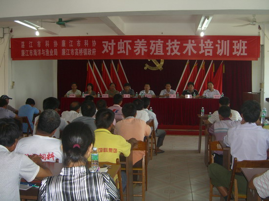 8月2日,湛江市科学技术协会、廉江市科学技术协会、廉江市海洋与渔业局、廉江市高桥镇政府联合举办的,科普惠农对虾养殖技术培训班,在廉江市高桥镇举办。这是我市科协系统,开展了形式多样的农技培训,把先进实用技术送到基层,带给群众,力促科普惠民深入开展 的 重要举措之一。