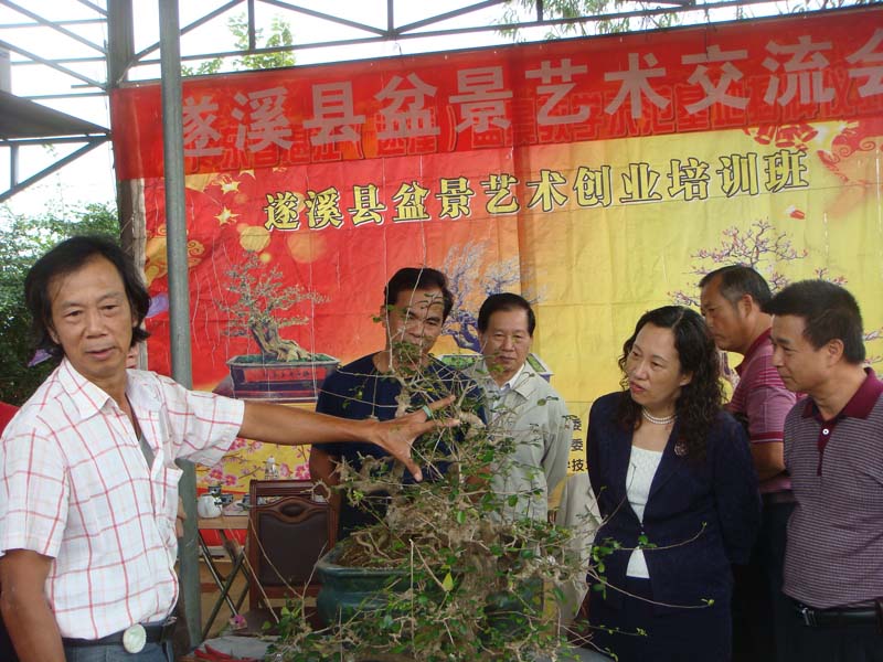 11月 4日,由湛江市关工委、遂溪县关工委、遂溪县科协和遂溪县盆景协会联合主办的遂溪县盆景艺术交流会在遂溪县盆景科普示范基地举办,湛江市科协副主席许进、湛江市政协经济委主任卜伟出席了会议并作讲话。湛江市盘景协会会陈日生参加了会议并现场示范盆景艺术造型剪技。