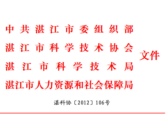 中共湛江市委组织部、湛江市科学技术协会、湛江市科学技术局、湛江市人力资源和社会保障局。本次会议由湛江师范学院承办。
