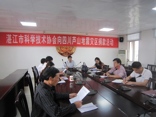 4月20日,四川雅安市发生里氏7.0级地震,造成大量人员伤亡和财产损失。灾区人民的危难牵动了全国人民的心,也牵动着湛江市科学技术协会全体干部职工的心。4月27日下午,湛江市科学技术协会主席肖斌带领全体干部职工以及科技报、白蚁所、科技推广中心等单位代表发扬“一方有难、八方支援”的中华民族的传统美德,积极献爱心,慷慨解囊,积极向四川雅安地震灾区人民捐款。为灾区人民渡过难关,恢复正常生产和生活献一份心,尽一分力。