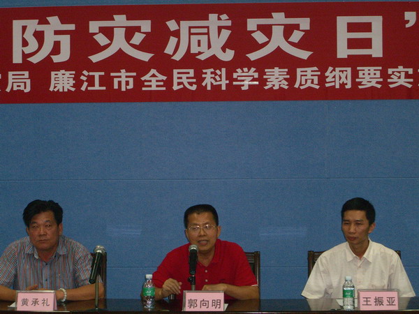 在科普知识讲座现场, 湛江市科协副主席郭向明演讲防灾减灾科普知识,他从心理、体能、应对三方面,从生死攸关到生龙活虎。。。。深入浅出,生动活泼演讲,迎来听从雷鸣般的掌声。