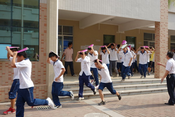 地震应急疏散演练图为学生在老师指引下有序撤离 (下图)