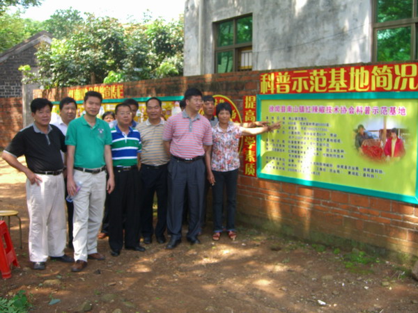 在徐闻红辣椒技术协会及科普示范基地调研、肥水混合、节水灌溉的科学灌溉方法,介绍了香蕉、韭菜等立体间种辣椒良种良法获得高效益的科学种植方法和成功经验,