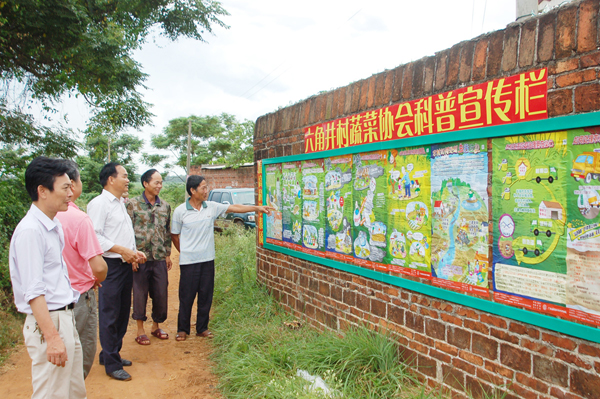 湛江科协网讯(图文/ 邓斌)“科普宣传栏走进乡村,与农民零距离见面,不但使大伙增加了生活常识,还能交流农业技术知识,好的很。”这是6月5日,笔者随同徐闻县科协主席郑达伍一行检查全县科普宣传栏建设情况时,站在科普宣传栏前的该县前山镇六角村农民郑大叔高兴地说的一番话。