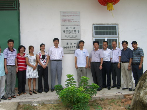 为深入贯彻落实《中华人民共和国科学技术普及法》和《全民科学素质行动计划纲要》,鼓励、支持社会力量兴办科普事业,进一步推进全市科普教育基地建设,根椐《湛江市科普教育基地管理办法》的规定,今年4月,湛江市科协决定批准,湛江市茗禾茶业有限公司茶叶新品种科普示范基地,命名为“湛江市科普教育基地”。
