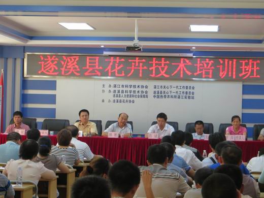 6月28月上午,湛江市科普惠农(遂溪)花卉技术培训班在遂溪县人力资源中心举办。培训班由湛江市科学技术协会、湛江市关工委主办,遂溪县花卉协会承办,遂溪县科学技术协会、遂溪县关工委、遂溪县人力资源和社会保障局、中国热带农科院湛江实验站协办。湛江市科协主席肖斌出席了开班仪式并做动员讲话,市科协副主席郭向明、科普部部长黄成礼和培训班主办、协办及承办单位领导代表也出席了开班仪式。
