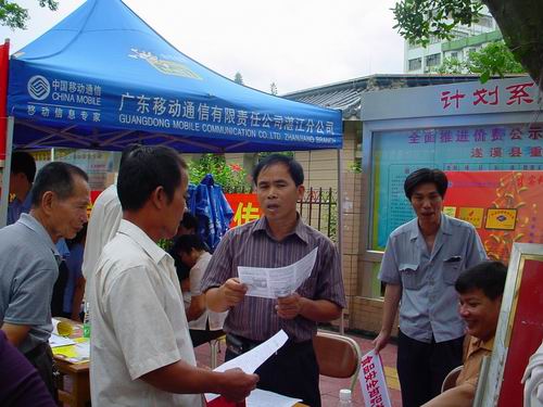 遂溪县全国农村科普惠农带头人陈理常(中)解答群众咨询