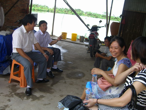 考察吴川科普示范基地养殖场,与科普养殖示范户进行了交流,听取他们采取鸭-猪-鱼-香蕉立体种养的科学养殖方法和取得实效经验介绍。肖斌一行边听边记边问边了解情况。