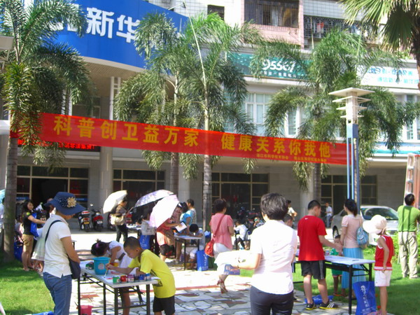 8月11日上午,由湛江市科学技术协会和湛江市霞山区海滨街道办主办的,“大手牵小手,共创国家卫生城市”科普进社区的活动,在霞山区海昌路祥源广场举行。此次活动形式多样,内容丰富。对提高全民科学素质,促进城市可持续发展,具有重要意义和积极影响。霞山区政府副区长黄毅、市科协主席肖斌、副主席郭向明、科普部部长黄承礼参加了活动,出席本次活动的有霞山区政府、湛江市科协、霞山区科协、霞山区科技局、霞山区安全生产监督管理局、霞山区海滨街道海昌社区居民委员会、霞山区海滨街道海宁社区居民委员会的领导以及社区居民。本次活动的举办得到了湛江市新华保险、湛江市得意书画室、海滨街道社区卫生服务中心等社会力量的参与和支持。