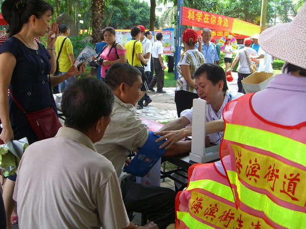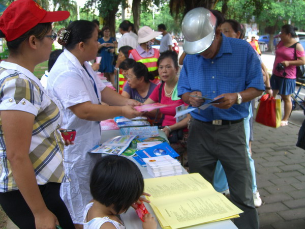 现场张挂的科普知识挂图,以及大量发放的用通俗易懂的科普资 料, 让社区居民们轻松地接受了一系列的科普知识。