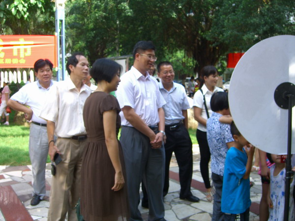 霞山区政府副区长黄毅、市科协主席肖斌与海滨街道办负责人、海昌社区委员会负责人等到现场进行指导