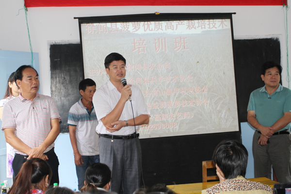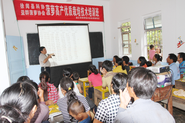 湛江科协网讯(图文/ 邓斌)9月7日,徐闻县益群菠萝技术协会在前山镇后吉尾村为村民举办了一次菠萝种植讲座。农技协会员、种植大户近200多人参加了培训。