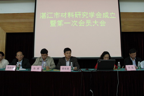 湛江市材料研究学会成立暨第一次会员大会于2013年12月6日下午在湛江师范学院图书馆学术报告厅举行。广东省材料研究学会名誉会长梁振锋研究员,秘书长戚文军教授,湛江市科学技术协会主席肖斌、市经济和信息化局副局长周学巨,市民政局主任李大兴主任、龙润科长、市科协学会部部长田丽,湛江师范学院副院长邵乐喜教授,湛江中科炼化筹备组总工程师、资深石化专家邓世强教授级高工等企业负责人和相关高校专家200多人出席了本次大会。