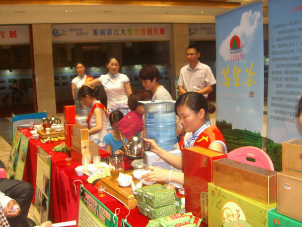 4月26日上午,由湛江市科协、中国茶叶学会、广东省茶业行业协会、广东省茶叶学会、湛江市科技局、湛江市农业局主办,湛江市茶叶协会承办的2014全民饮茶日科普活动在湛江鹰展假日广场举行,原湛江市副市长植标志、湛江市农业局局长罗辉、湛江市科协主席肖斌、湛江市科技局副局长陈祥胜、省茶业行业协会副会长李裕南按动水晶球启动2014文化科技卫生“三下乡”暨全民饮茶日科普活动。