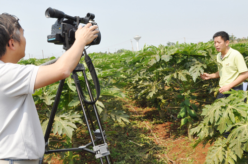 湛江科协网讯(图文/ 邓斌)3月31至4月1日,广东省科技厅联合省果树科学研究所组成的农村党员干部远程教育节目制作组到徐闻拍摄科教片《番木瓜撑起大产业》,以更好地普及番木瓜种植知识,推动全省番木瓜生产蓬勃发展。