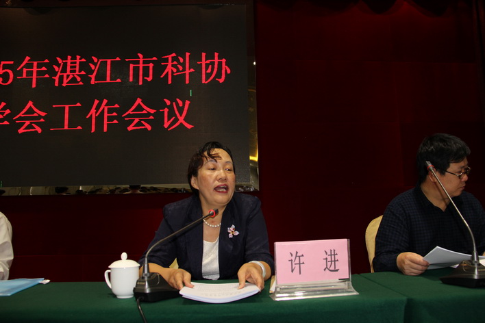 3月31日,湛江市科协2015年学会工作会议在金海酒店举行。各市级学会(协会、研究会)、县(市、区)科协、学会科技服务站、驻湛各高校科研处、企业科协有关同志近100人出席了会议会议由戴红兵副处调研员主持。许进副主席传达省科协学会能力建设会议精神,总结我市2014年学会工作,部署2015年学会工作;陈法宝副处调研员宣读《关于表彰湛江市科协2014年度学会工作先进集体和先进工作者的决定》和《关于表彰湛江市科协2012-2013年度优秀论文奖的决定》;市科协肖斌主席作最后讲话。