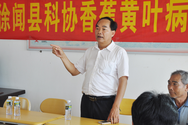 湛江科协网讯(图文/ 邓斌)5月26日上午,由徐闻县科协牵头,组织全县各农民专业技术协会100名农户举行了一场蔬菜、菠萝、芦荟、粮食、良姜、甘蔗等农作物种植技术培训活动,通过送科技下乡把更多更实用的科技知识带到群众身边。培训班上,徐闻县科协主席郑达伍亲自给农民讲课。