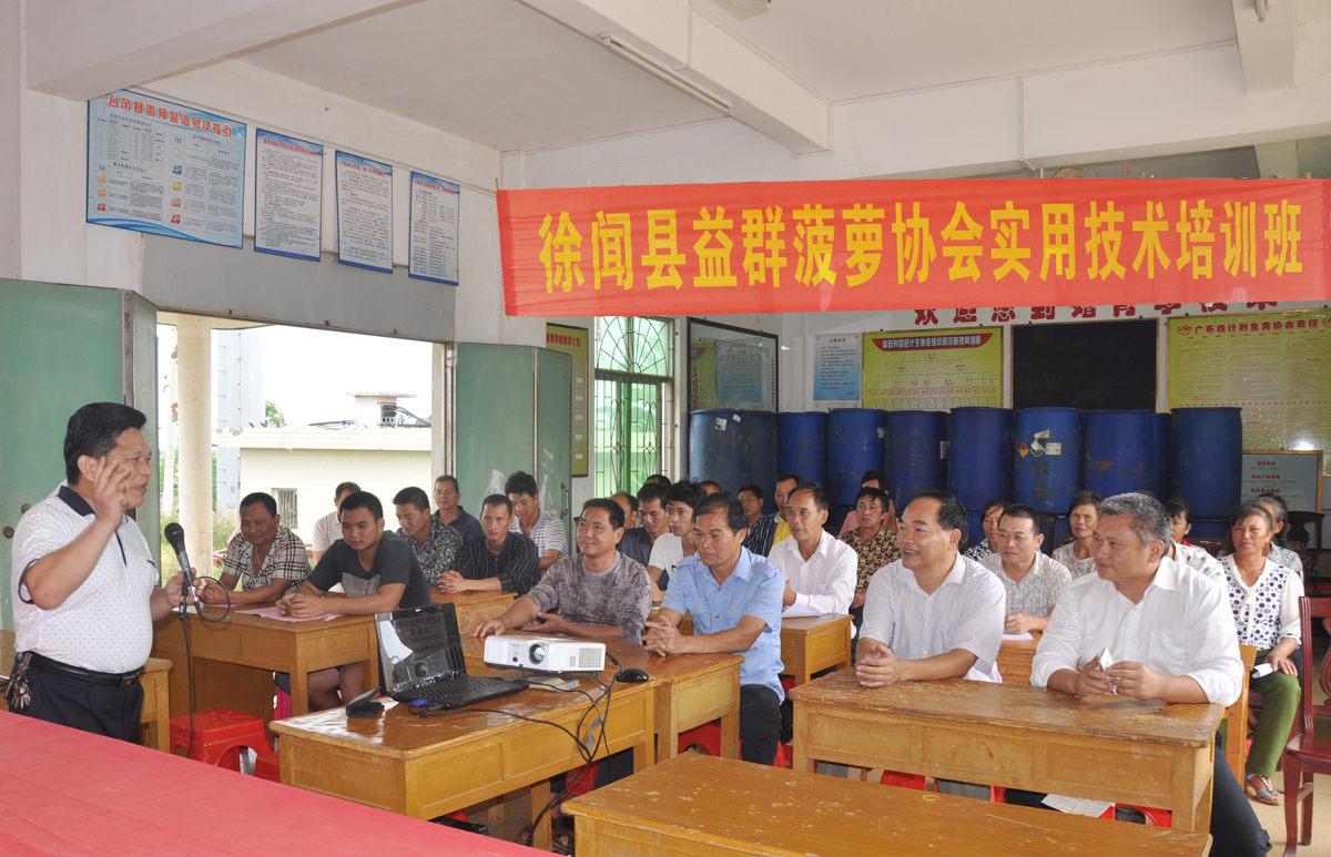 湛江科协网讯(图文/ 邓斌)为助农户增收,提供科技支撑服务,于11月6至9日,由徐闻县农民组织的益群菠萝、旱粮技术协会联合开展“科普之冬”送科技下乡活动,举办了大规模的农作物实用技术培训班,将急需的农业技术送到农民兄弟手中,并面对面开展技术指导。