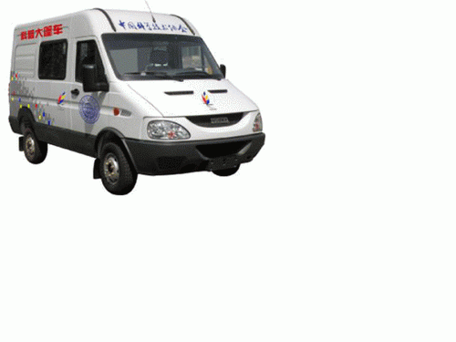 该车选用NJ6483ATS6 型依维柯客车改装而成,国Ⅲ排放标准,采用涡轮增压柴油发动机,排量为2.798升,车辆改装后长4845mm,宽2000mm,高2500mm,包括驾驶员共可乘坐6人。由带推拉式玻璃窗的中隔断将车厢分为驾驶区和科普宣传工作区两部分,保证驾乘人员的安全及乘坐舒适。车内装备有科普宣传专用设备;配备多媒体广播系统,包括多媒体硬盘录放机、功放、音箱、各路信号间的切换装置等音响系统;投影机、投影幕等放映系统;设置220V市电电源接口及绕线盘装置;车内具有220V 和12V 照明系统、专用多功能组合插座;设置有科普宣传用工作台和工作柜、以及大容量的展品箱和展板存放空间及固定装置,固定装置可根据展品箱和科普用品的多少来固定并能方便灵活的拆卸。