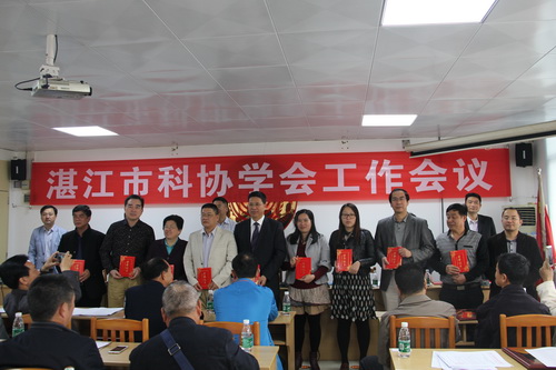 郭向明副主席宣读《关于表彰湛江市科协2015年度学会工作先进集体和先进工作者的决定》,对在2015年度学会工作中做出显著成绩的湛江市医学会等18个学会授予“学会工作先进集体”称号和对叶富良等19名同志授予“学会先进工作者”称号。