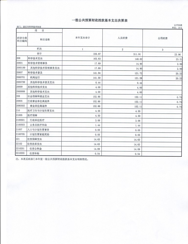 2024年湛江市科学技术协会(本级)部门决算及“三公”经费决算公开