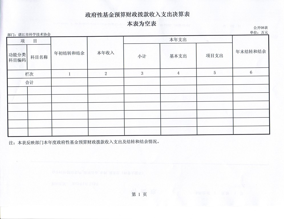 2014年湛江市科协政府性基金预算财政拨款收入支出决算表