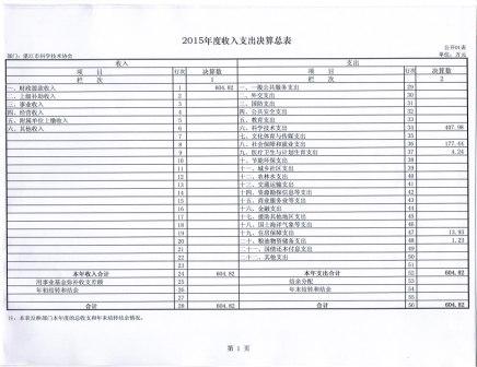 2015年度湛江市科协收入支出决算总表