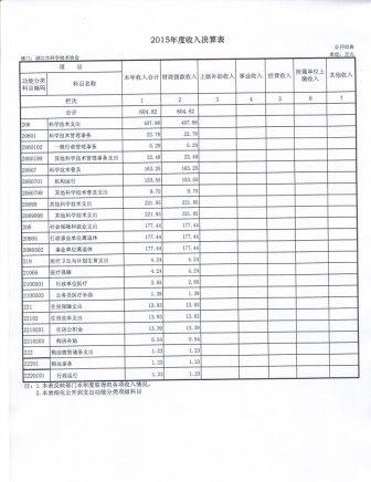 2015年度湛江市科协收入决算表