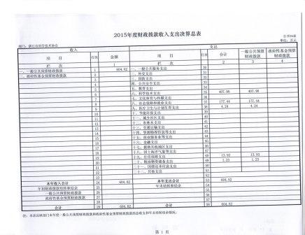 2015年度市科协财政拨款收入支出决算总表