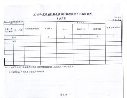 2015年度市科协政府性基金预算财政拨款收入支出决算表