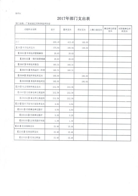 2017年湛江市科协部门支出表