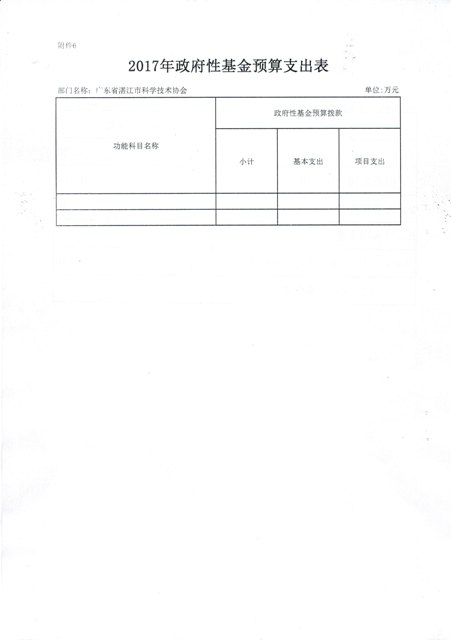 2017年湛江市科协政府性基金预算支出表