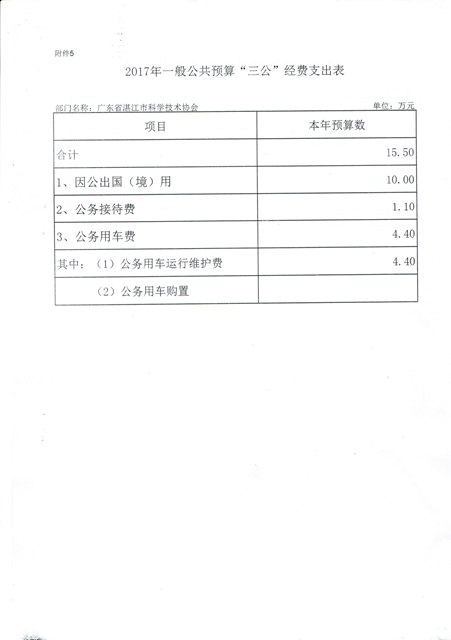 2017年湛江市科协一般公共预算“三公”经费支出表