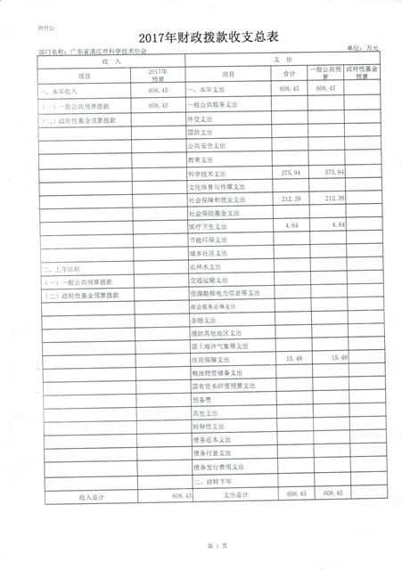2024年湛江市科学技术协会(本级)部门决算及“三公”经费决算公开