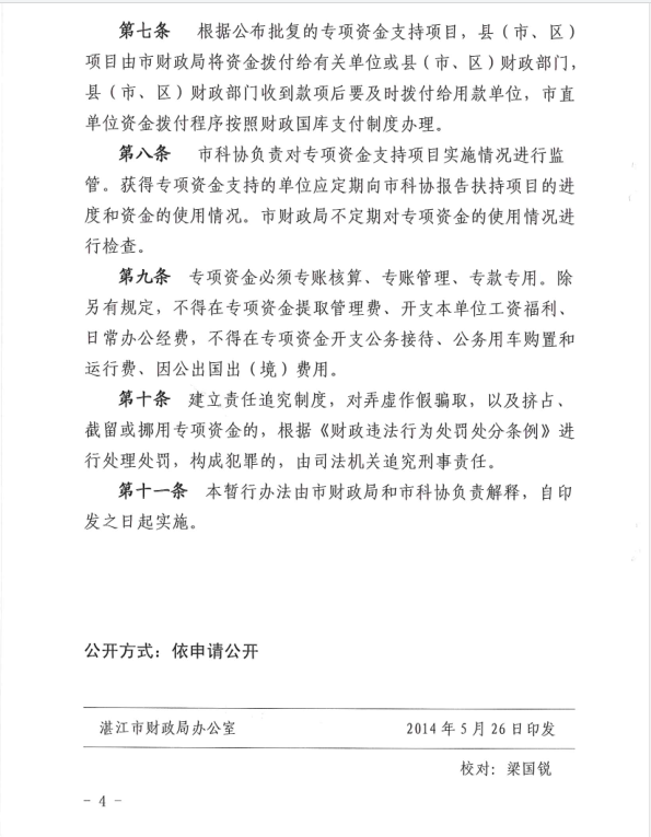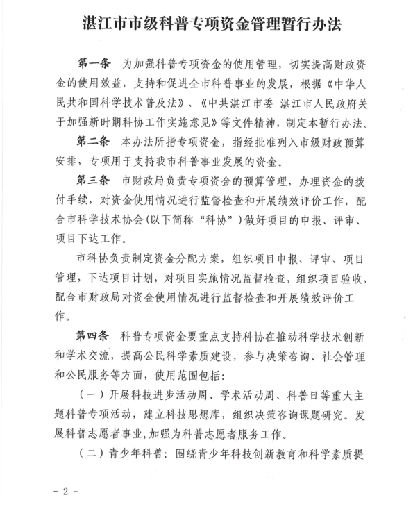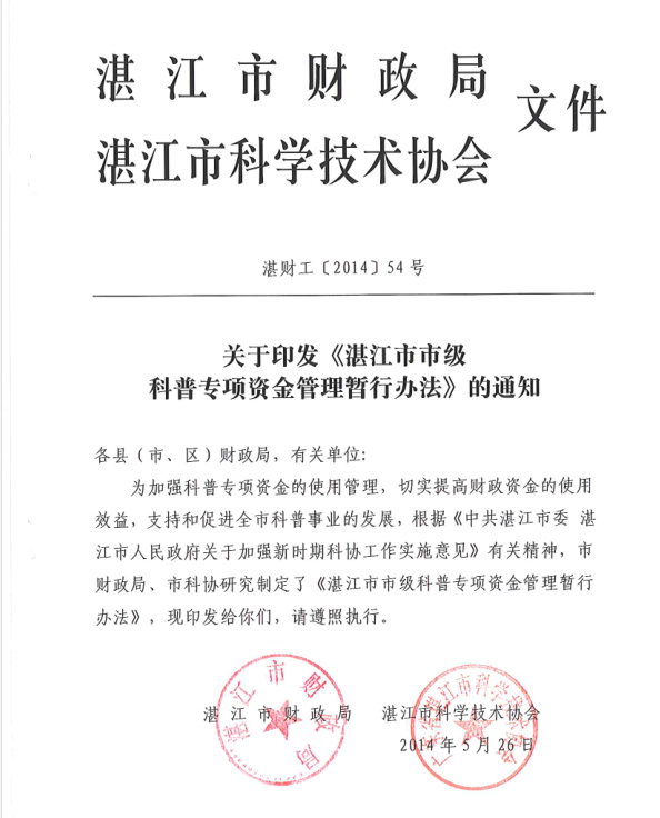 关于印发《湛江市市级科普专项资金管理暂行办法》的通知