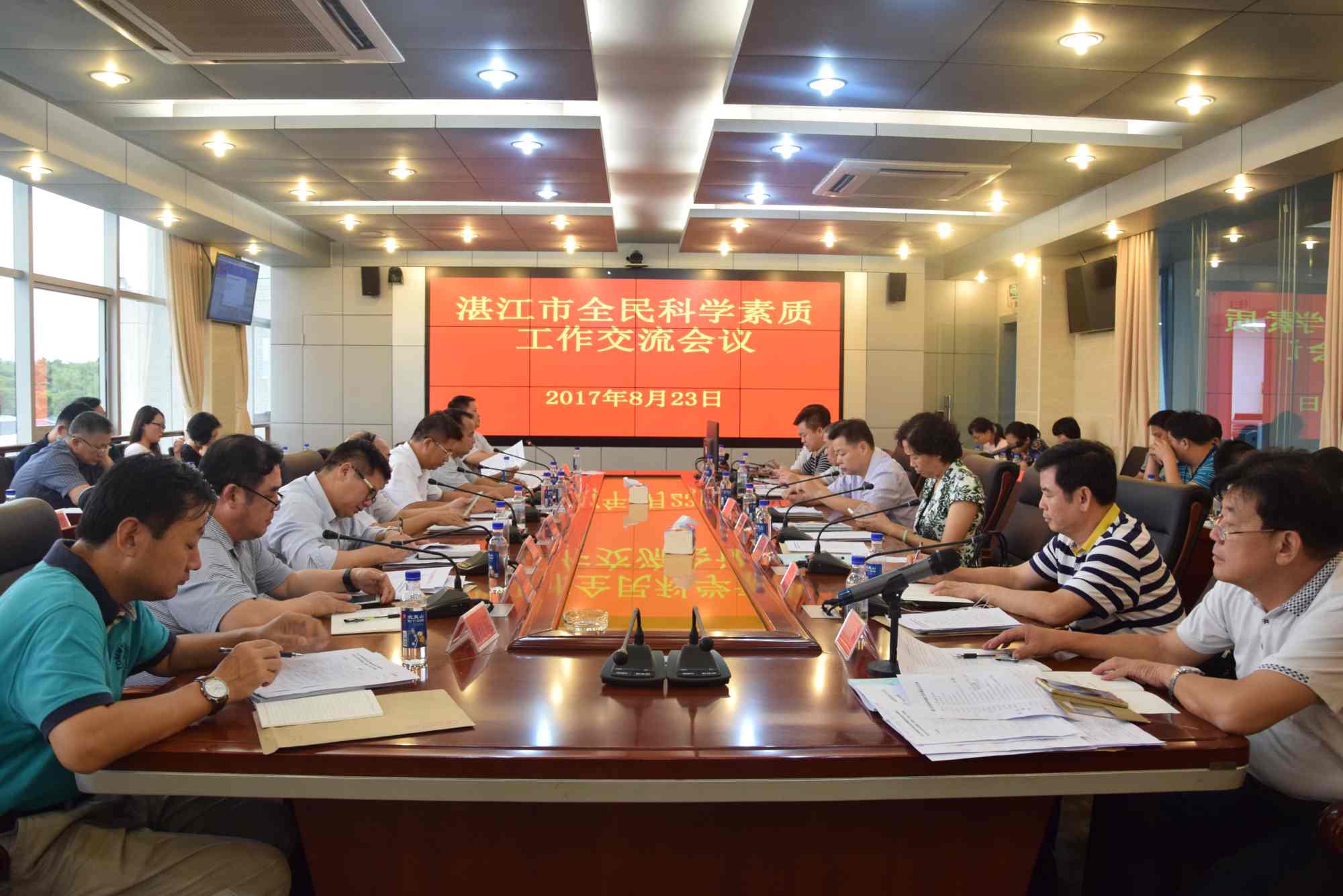 贯彻落实《湛江市全民科学素质行动计划纲要实施方案(2016-2020年)》,迎接广东省全民科学素质纲要实施工作办公室对我市实施全民科学素质工作的督查。2017年8月23日上午,湛江市全民科学素质工作交流会议在湛江市遂溪县气象局二楼会议室召开,湛江市全民科学素质纲要办主任、湛江市科协主席肖斌、湛江市全民科学素质纲要办22个成员单位分管领导、联络员、各县(市、区)纲要办(科协)主席、以及会议相关部门负责人一共50余人参加会议。
