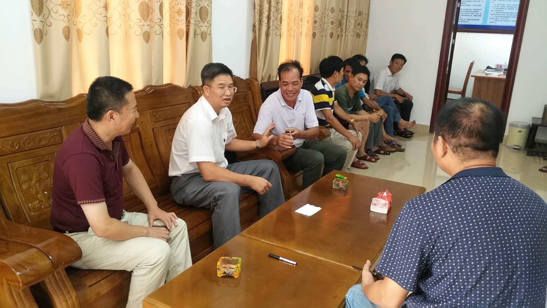 8月14日,市科协肖斌主席带队到扶贫帮扶点调研指导扶贫工作,雷州市政协副主席、科协主席陈家祥陪同调研。市科协在雷州有两个帮扶点,在上午的纪律教育学习月活动动员暨理论学习会结束后,肖斌主席马不停蹄驱车百多公里赶赴雷州。在雷州市覃斗镇下海村,肖斌主席认真了解村公共服务站、党员会议室建设情况,对村的扶贫工作给予肯定。同时建议抓紧开展村农贸市场建设。